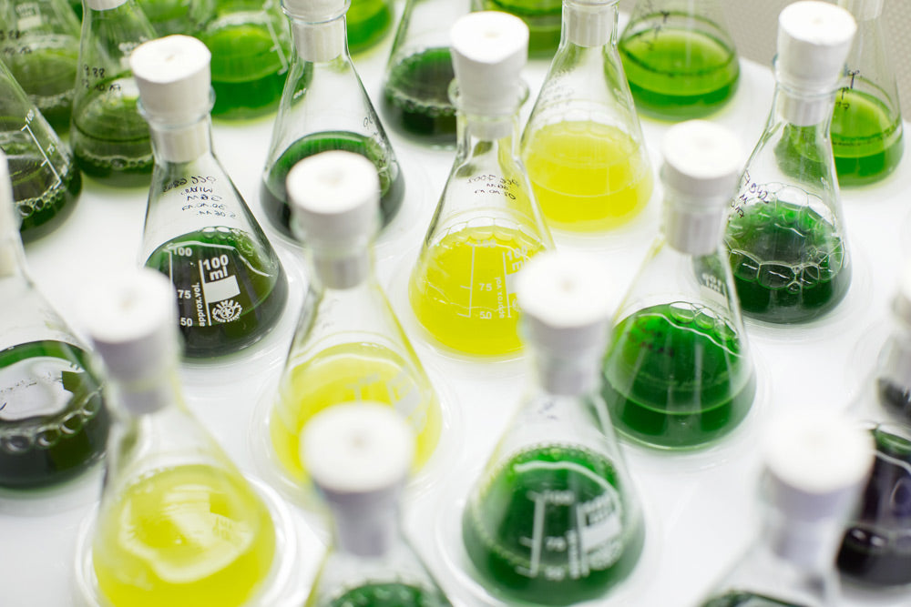 Zunächst werden die Mikroalgen in kleinen Mengen im Labor gezüchtet, bis sie sich in den großen Wasserbecken im Gewächshaus vermehren können. Um zu wachsen, brauchen Algen nur Kohlenstoffdioxid aus der Luft, Sonnenlicht, ein paar Nährstoffe und Wasser.