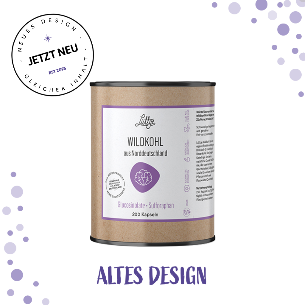 Wir haben ihn wieder salonfähig gemacht: den Wildkohl, eine Kreuzung aus Brokkoli, Rosenkohl und Grünkohl. Die alte, vielerorts in Vergessenheit geratene Sorte enthält wertvolle Inhaltsstoffe wie Senföle, die so genannten Glucosinolate (Sulforaphan), und sekundäre Pflanzenstoffe wie Flavinoide. Erhältlich als Pulver oder Kapseln. Rein pflanzlich, ohne künstliche Zusatzstoffe, Konservierungsstoffe oder Zuckerzusatz. Ein Superfood in bester Rohkostqualität!